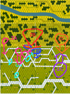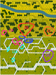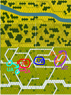 ケンプファーの飛込みを警戒して、UA部隊は下がり気味に移動したが、中央にいたUB部隊が孤立。