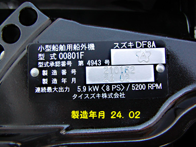補助エンジンとしてスズキDF8A新品が付いています。(検査必要)